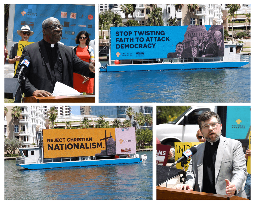 From Nashville to Las Vegas, Faithful America organized our members and local clergy to protest nearly every single stop of Gen. Michael Flynn and Roger Stone's pro-violence, anti-democracy ReAwaken America Tour and its affiliate group "Pastors for Trump" since February 2022. Our organizing against the toxic blending of worship and election denial was so effective that in October 2023, the L.A. Times said we were a major reason why the tour was having trouble booking new venues -- causing Trump advisor and ReAwaken speaker Roger Stone to lash out and call our executive director at the time a "blasphemous a*****e" on Twitter/X. (He didn't use asterisks.)